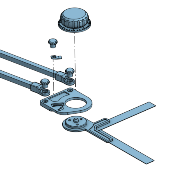 There used to be many different designs for drafting arms/machines, but I opted for this relatively simple setup comprised of two 4-bar linkages. These ensure the end of the arm is always parallel to the edge of the table, and the angle of the rulers can be adjusted using the knob and associated markings. Most of the parts are 3D printed with M4 hardware and heat-set inserts being used for assembly. I came up with a few different designs, but eventually landed on a setup with all the hardware hidden that gave the arm a clean look. Most of the challenges involved tolerancing of the joints and the angle locking mechanism I designed, but a bit of iteration got rid of any slop in the linkages.